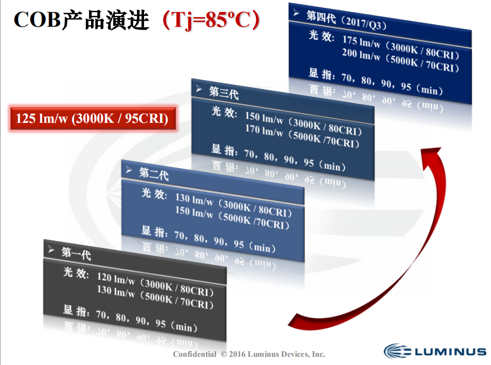 ?光效>170lm/W, 70CRI; >125lm/W, 90CRI